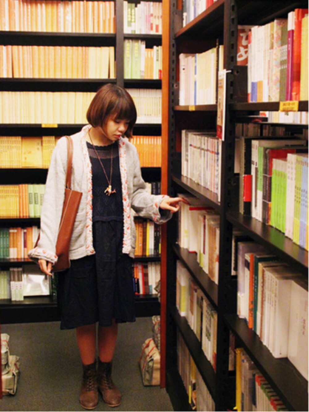 ブルー系のワンピースを着用したレディースの秋コーディネートの1枚目の写真