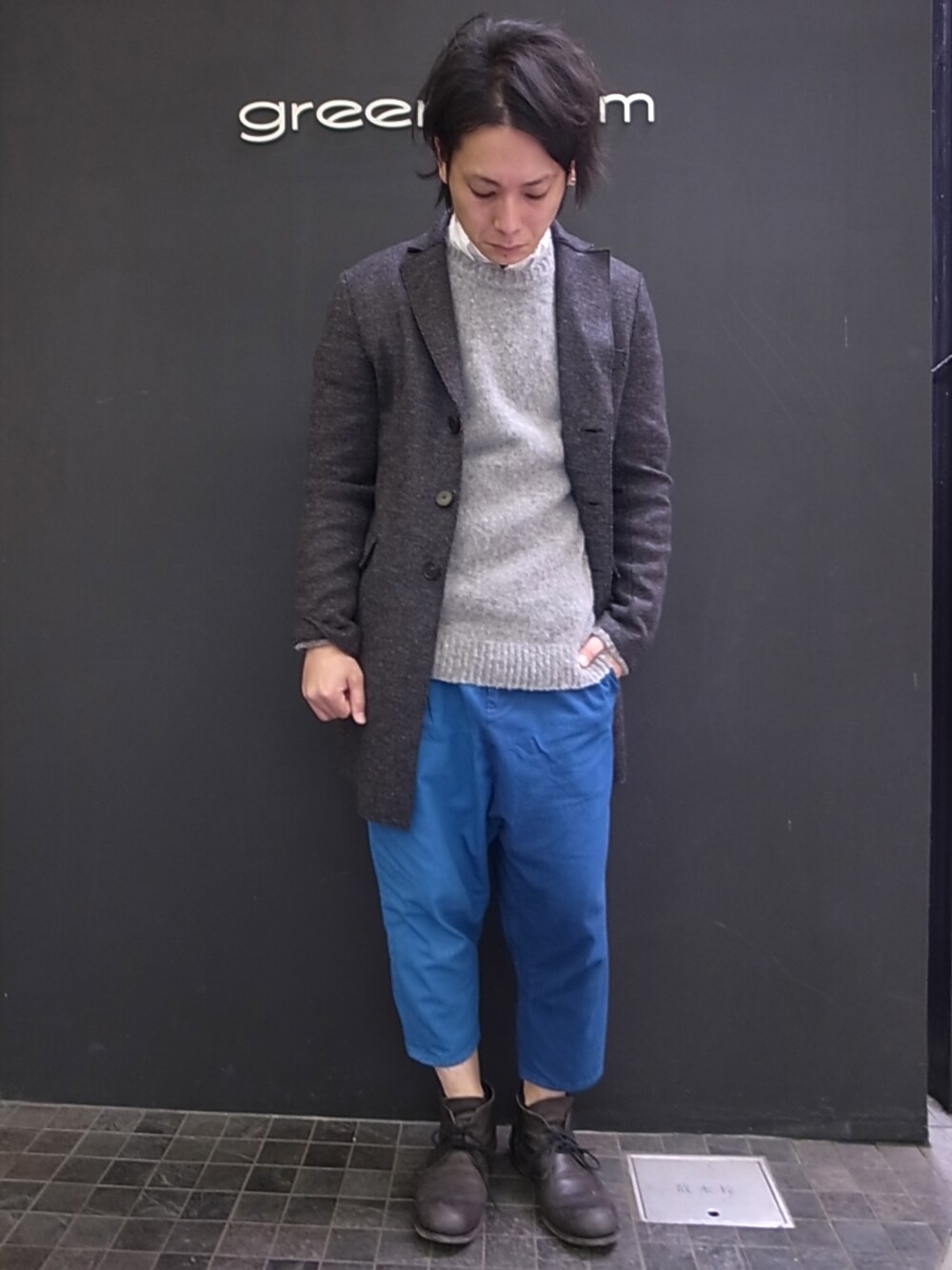 HARRIS WHARF LONDON hesterfield coat ¥68,250-(TAX込) ALEXANDER WANG CROW NECK SWEAT ¥46,200-(TAX込) GITMAN VINTAGE Oxford ¥19,740-(TAX込) DIGAEWEL INDIGO DYE SAROUEL PANTS ¥25,200-(TAX込)