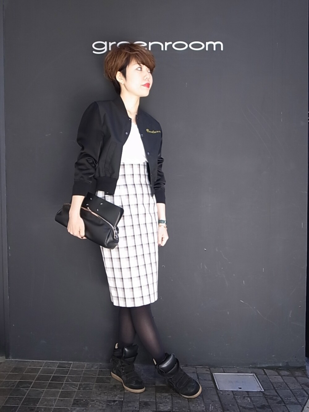 Maison Martin Margiela 11 frame pochette ¥131,250-(TAX込) G.V.G.V. CLUELESS VARSITY JACKET ¥36,750-(TAX込) ALEXANDER WANG SINGLE JERSEY LONG SLEEVE TEE ¥14,700-(TAX込) G.V.G.V. TARTAN CHECK FITTED SKIRT ¥17,850-(TAX込) ISABEL MARANT OVER BASKET ¥69,300-(TAX込)