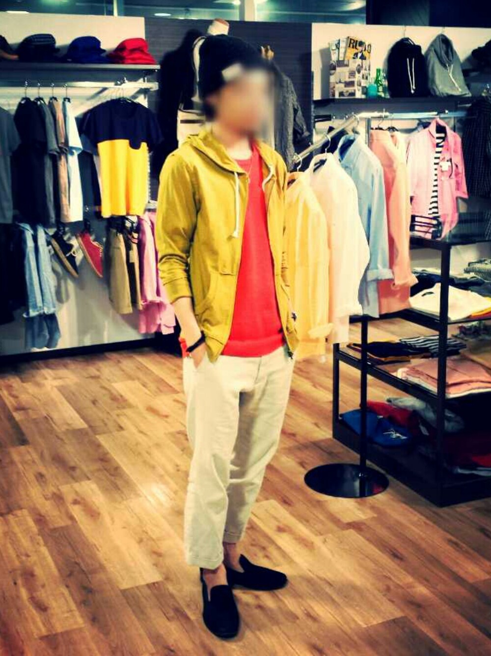 七分袖パーカー 半袖サマーニット 綿麻クロップドパンツ オペラシューズ 黄色オレンジ初挑戦です。
