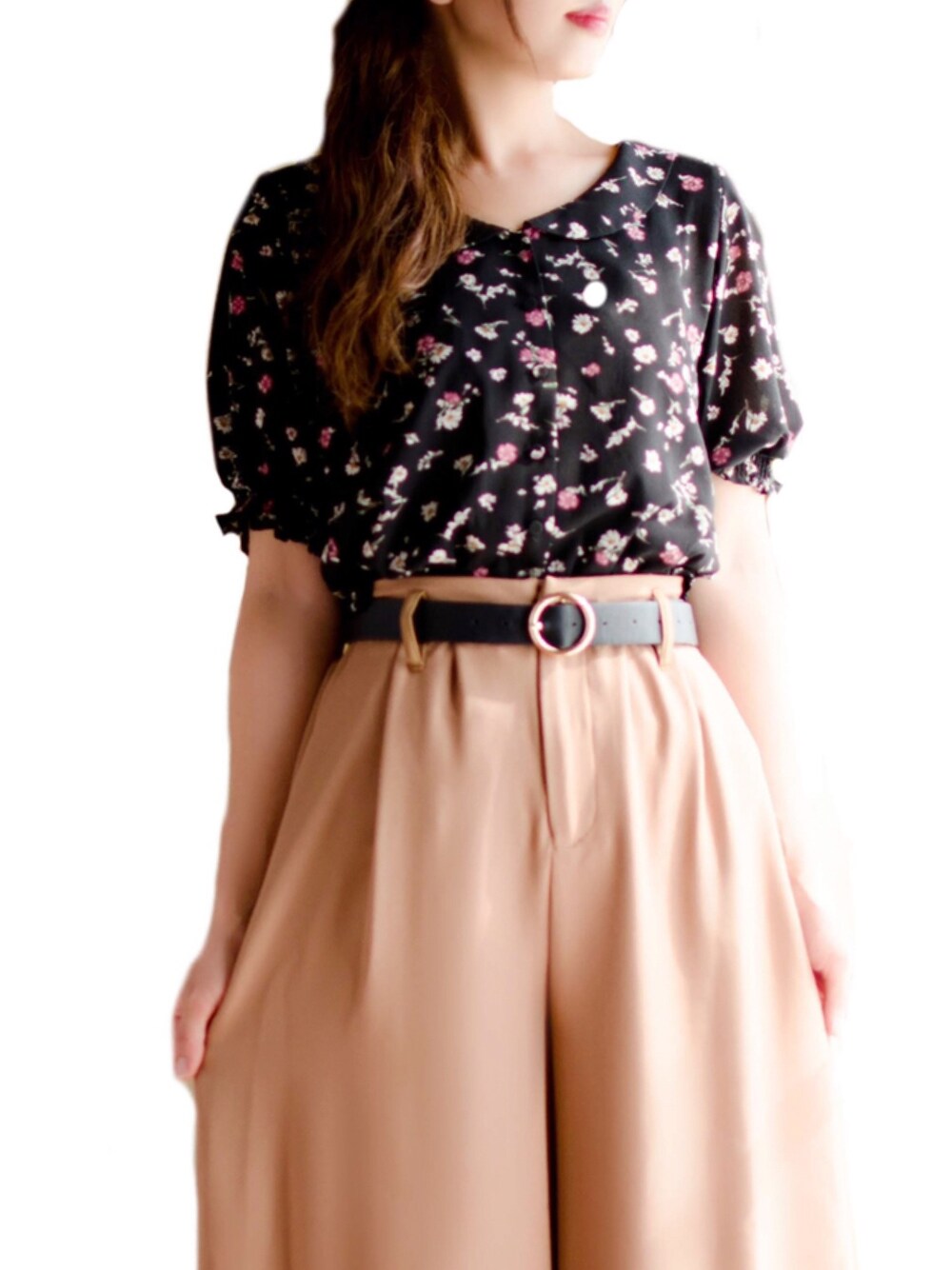 えりり🌷骨格ウェーブ/イエベ秋のシャツ/ブラウス「丸衿レトロ花柄ブラウス」を使ったコーディネート