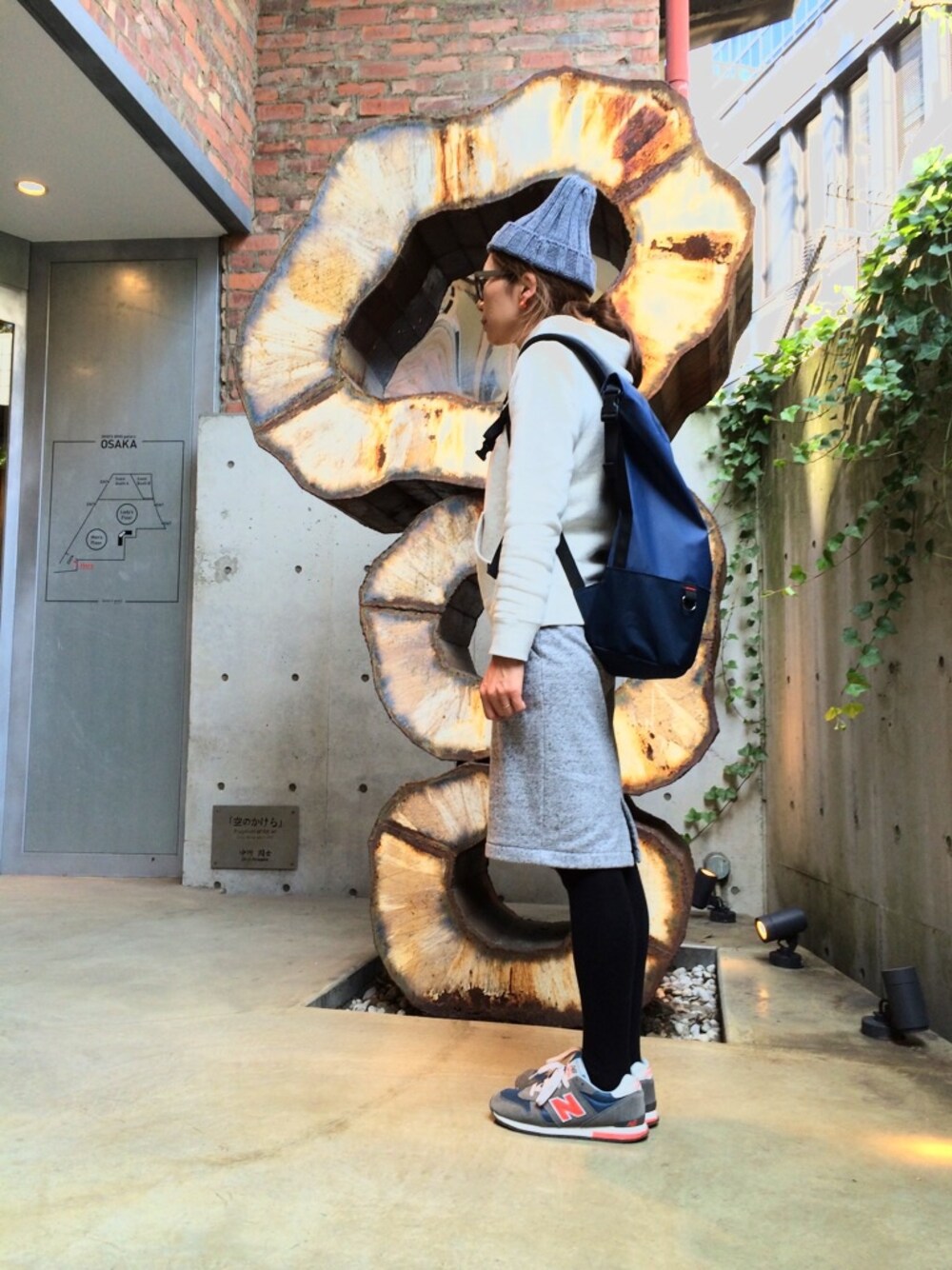 梅田ぶらり。 スウェット → アーバンリサーチ スカート → ユニクロ ニット帽 → マナスタッシュ 靴 → ニューバランス リュック → ヘリーハンセン