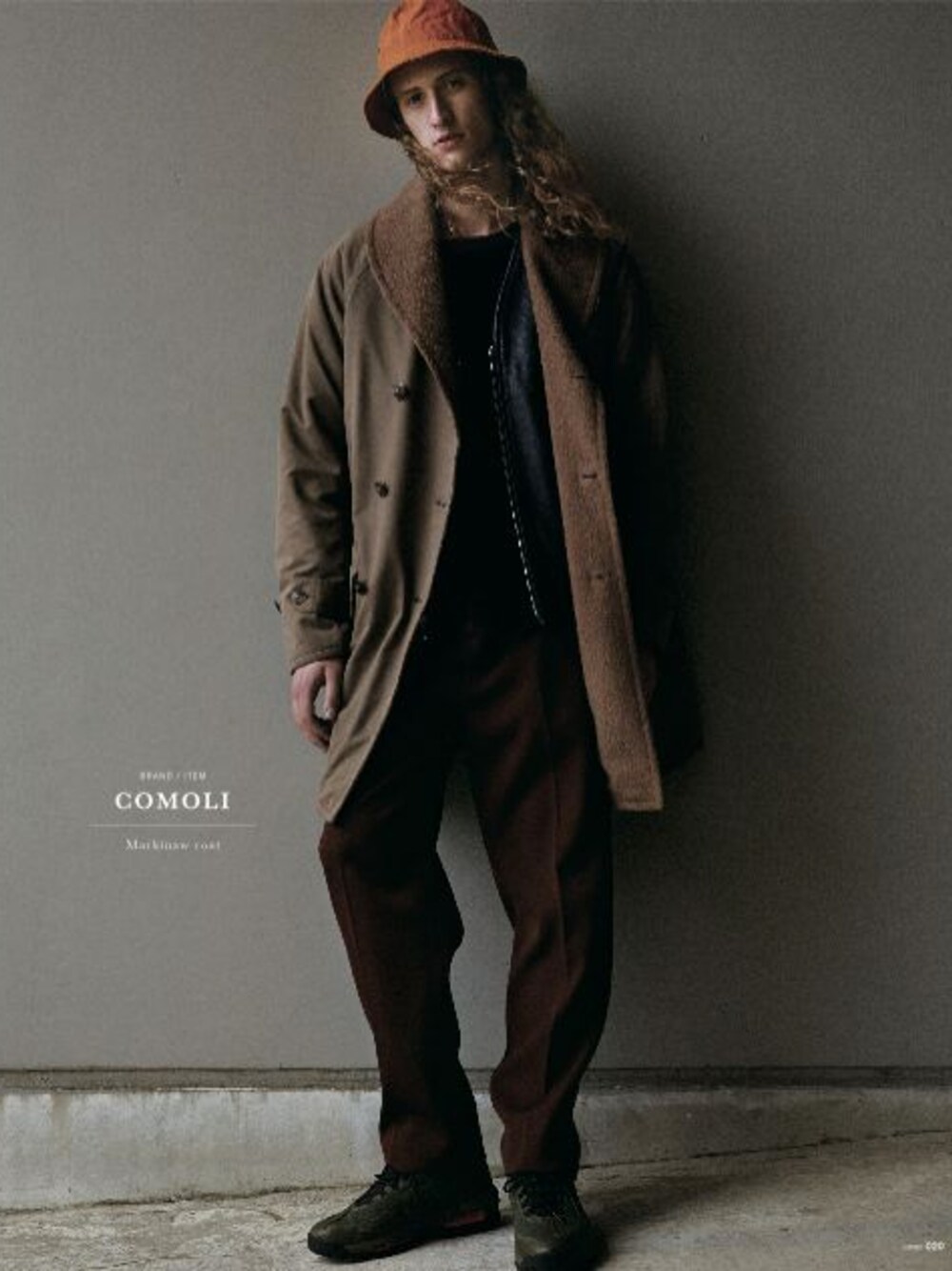 マッキノーコート/COMOLI スウェット/UNUSED レザーベスト/VANSON×US スラックス/soe ハット/UNIVERSAL WORKS スニーカーブーツ/NIKE SPORTS WEAR