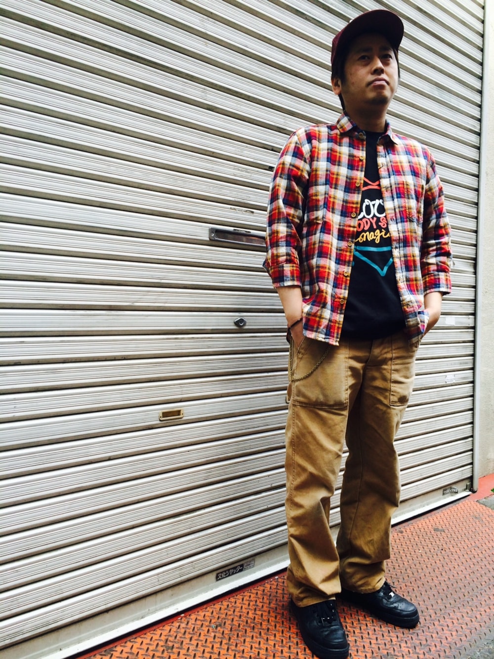 Usedライクなテイストでコーデしてみました!チェックシャツは七分袖で手首を見せて爽やかな見た目に!
