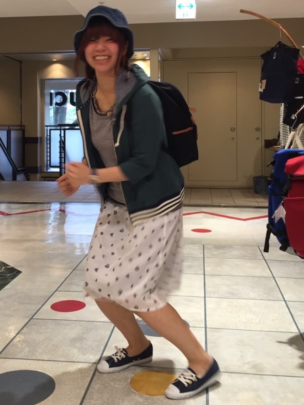 アウトドアスタイルで動きやすさを追求しました! 躍動感が伝わってきますね笑 白に緑のパーカーで色味もいいアクセントになってます! 見てるこっちも笑顔になれる100点の笑顔です笑 Twitter @grn_chiba 千葉PARCO店