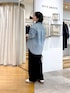 #158㌢ #骨格ストレート 【デニムシャツ】Fサイズ / ブルー こなれ感溢れる プルオーバータイプのデニムシャツ! ボタンの開ける位置によって 様々な印象で着こなしを楽しめます◎ 比較的薄手の生地なので、 インナー次第でロングシーズン着回しOK! 【インナー】Fサイズ / ブラック ラメ素材が編み込まれたタンクトップが今季も登場! シンプルになりがちなコーディネートの ワンポイントに最適な一着◎ すっきりとしたシルエットで シャツやニットの間から覗かせたり トレンドのシアーアイテムに合わせると さりげない存在感を発揮してくれる万能アイテムです! 【パンツ】36サイズ / ブラック お腹スッキリ+足が綺麗に見える タックワイドパンツ! ストレッチ性のある素材感で履き心地も◎ ラクしてキレイが叶います! ※158cmで36サイズで折り返さずにフルレングスで着用しています ※ 38サイズのウエストをひと折りして着用できました