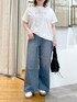 #158㌢ #骨格ストレート 【Tシャツ】Fサイズ / ホワイト シンプルで使い勝手のいいロゴTシャツ! 大人カジュアルなコーデにマッチする 万能トップスです◎ 柔らかい素材で着膨れしないサイズ感! マシンウオッシュ可能なのも嬉しいポイント! 【デニム】38サイズ / ブルー 足のラインをカバーしつつも おしゃれ見えが叶うワイドレッグデニム! 股上を深めの設計にしているので、 少しオーバーサイズで履いていただくバランスがおススメです◎ ※ハイウエストで着用しています 【スニーカー】店舗限定セレクトアイテム