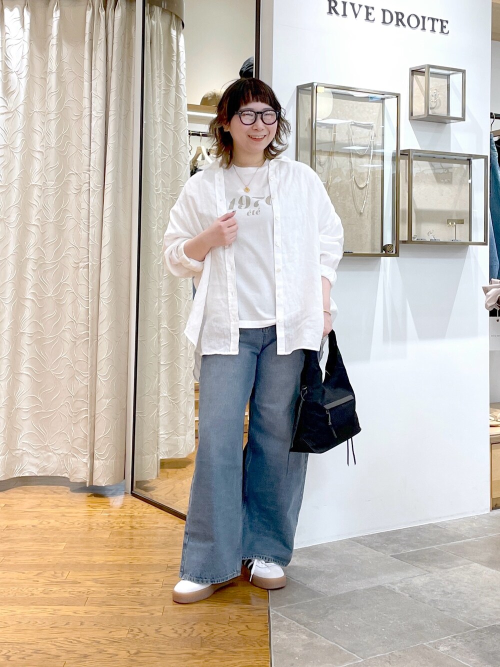 #158㌢ #骨格ストレート 【リネンシャツ】Fサイズ / ホワイト ナチュラルで程よくシアー感のある 大人の褒められリネンシャツ! 少しゆったりとしたルーズなサイズ感は 一枚で着るにも羽織としても大活躍◎ 肌当たりも心地よく、シーズンムードを高めてくれます! 【Tシャツ】Fサイズ / ホワイト シンプルで使い勝手のいいロゴTシャツ! 大人カジュアルなコーデにマッチする 万能トップスです◎ 柔らかい素材で着膨れしないサイズ感! マシンウオッシュ可能なのも嬉しいポイント! 【デニム】38サイズ / ブルー 足のラインをカバーしつつも おしゃれ見えが叶うワイドレッグデニム! 股上を深めの設計にしているので、 少しオーバーサイズで履いていただくバランスがおススメです◎ ※ハイウエストで着用しています