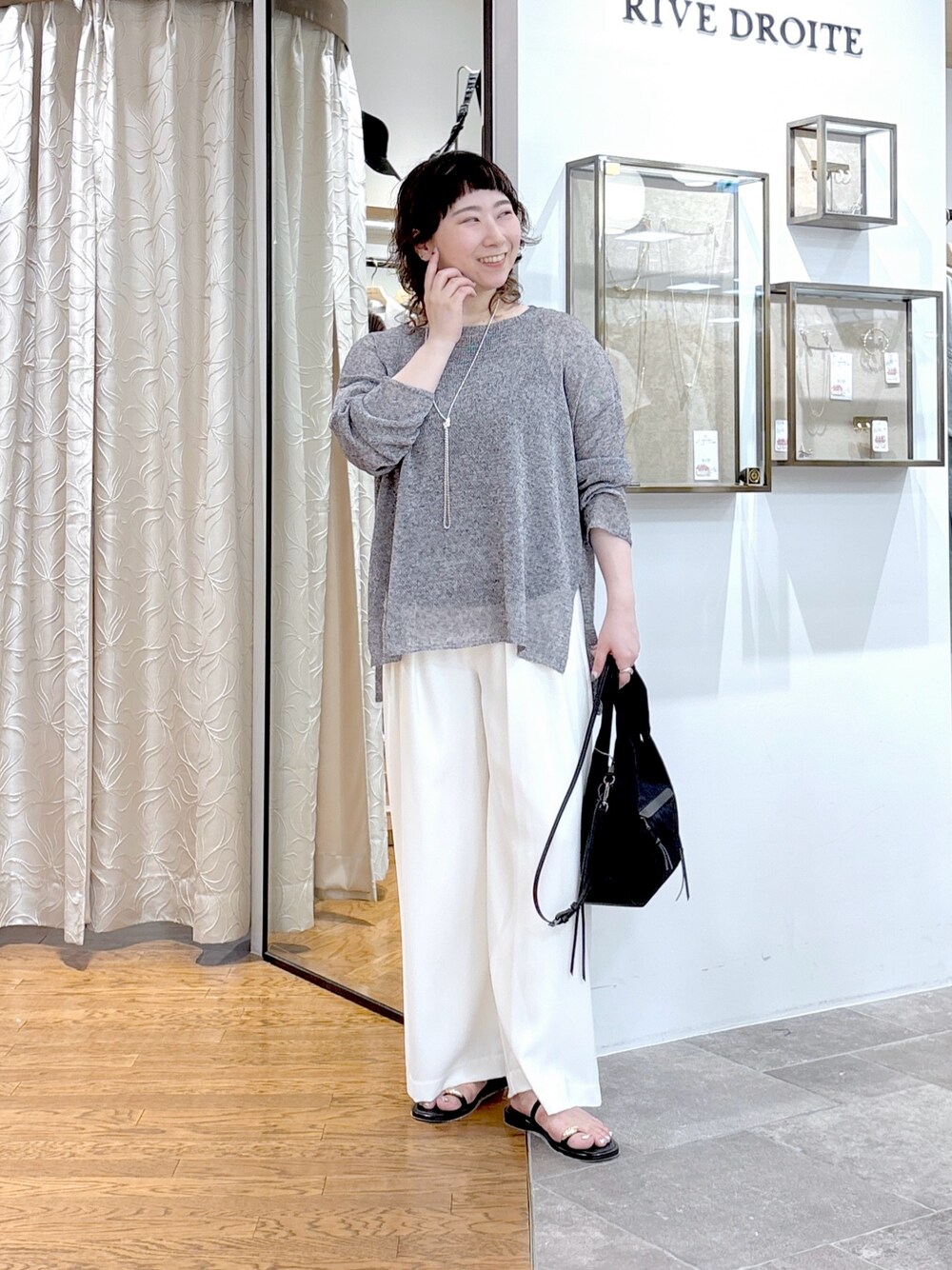 #158㌢ #骨格ストレート 【ニット】Fサイズ / グレー 透け感のあるざっくり編みがポイントの大人プルオーバー! リネン混素材のナチュラルな風合いと、涼しくさらっとした着心地が魅力です! 程よく横に抜けたネックラインやルーズな袖が、着るだけでこなれ感たっぷり◎ 前後差のある着丈&サイドスリット入りで、身長問わずバランス良く着こなせます! 冷房・日差し避けにも便利で、季節をまたいで活躍する一枚! インナーやボトム次第でON/OFF問わず着回せます! 【タンクトップ】Fサイズ / チャコールグレー リラックス感のある大人タンク! カジュアルすぎず、1枚でもインナーでも着回せる万能トップスです! 程よくゆとりのあるシルエットで、肩まわりもラクに◎ 首元はボートネック仕様で、デコルテをきれいに見せてくれます! ラウンドヘムでインしなくてもバランス良く着られるのも嬉しいポイント! 色違いでレイヤードして楽しむのもおすすめです! 【パンツ】36サイズ / アイボリー お腹スッキリ+足が綺麗に見える タックワイドパンツ! ストレッチ性のある素材感で履き心地も◎ ラクしてキレイが叶います! ※158cmで36サイズで折り返さずにフルレングスで着用しています ※ 38サイズのウエストをひと折りして着用できました