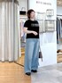 #158㌢ #骨格ストレート 【ロゴTee】Fサイズ / ブラック エッジのきいたロゴがアクセントに! 暑い季節も快適に過ごせる接触冷感素材を使用したロゴTシャツ! 程よくコンパクトなシルエットながら伸縮性があり着心地も◎ 短めの袖でヘルシーに、ジャケットやシャツのインナーとしても使える万能アイテムです! 【デニム】38サイズ / ブルー 旬なスタイリングに仕上がる、大人のドロストデニム! ルーズすぎないカーブシルエットで、抜け感がありながらすっきり見えも◎ 目を惹くドロストコードは、ウエスト裏にしまえる2WAY仕様! Tシャツやリブニットはもちろん、長めシャツやジャケットとのレイヤードにも相性抜群! 軽くて柔らかい甘織りデニムは、夏から秋まで快適に着まわせます! ほんのりグレイッシュなブルーが、シーズンムードをぐっと高めてくれる1本です! 【ローファー】店舗限定セレクトアイテム