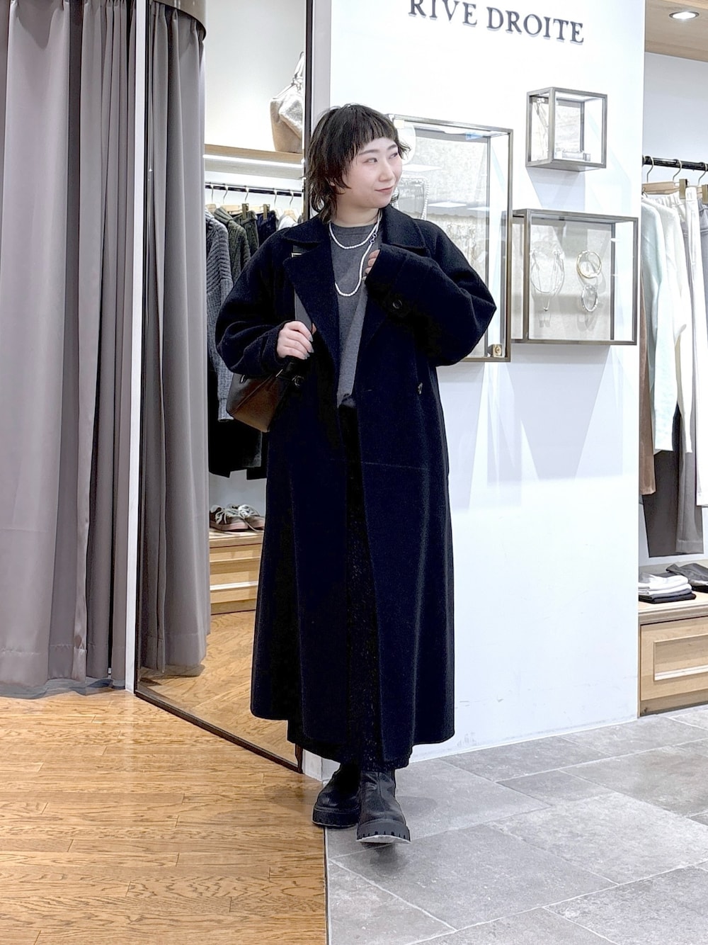 #158㌢ #骨格ストレート 【コート】36サイズ / ブラック 軽い着心地でスッキリ見える!イチオシのロングコート! ラグランスリーブで肩周りスッキリ見え◎ 腕周りには余裕があるので、厚手のニットでも楽に羽織れます! オンオフ兼用で着回し力抜群のロングコートです! 【ニット】Fサイズ / チャコールグレー モチっとした着心地が魅力の、ルーズロゴニット! 長め丈で気になる部分を上手にカバー◎ 洗える素材なのも嬉しいポイント! 【スカート】36サイズ / ブラック 足のラインをスッキリ見せてくれるラメニットスカート! リブニットで伸縮性が高くストレスフリーな着心地◎ セットアップでも、他のニットやブラウス、スウェットとも合わせやすく 秋冬活躍間違いなしのおすすめスカートです! 【ブーツ】38サイズ(24.5cm) / ブラック スタイルアップ効果抜群のサイドゴアブーツがリバイバル! かかと部分にジップがついており、脱ぎ履き楽ちん◎ 足首に沿うようなデザインで、スッキリ見え&ボトムの合わせやすさ抜群! ※37サイズで薄手の靴下で丁度良いサイズです、38サイズは厚手の靴下で丁度良いサイズです。 ※普段は23.5〜24.0cmで靴を選んでいます