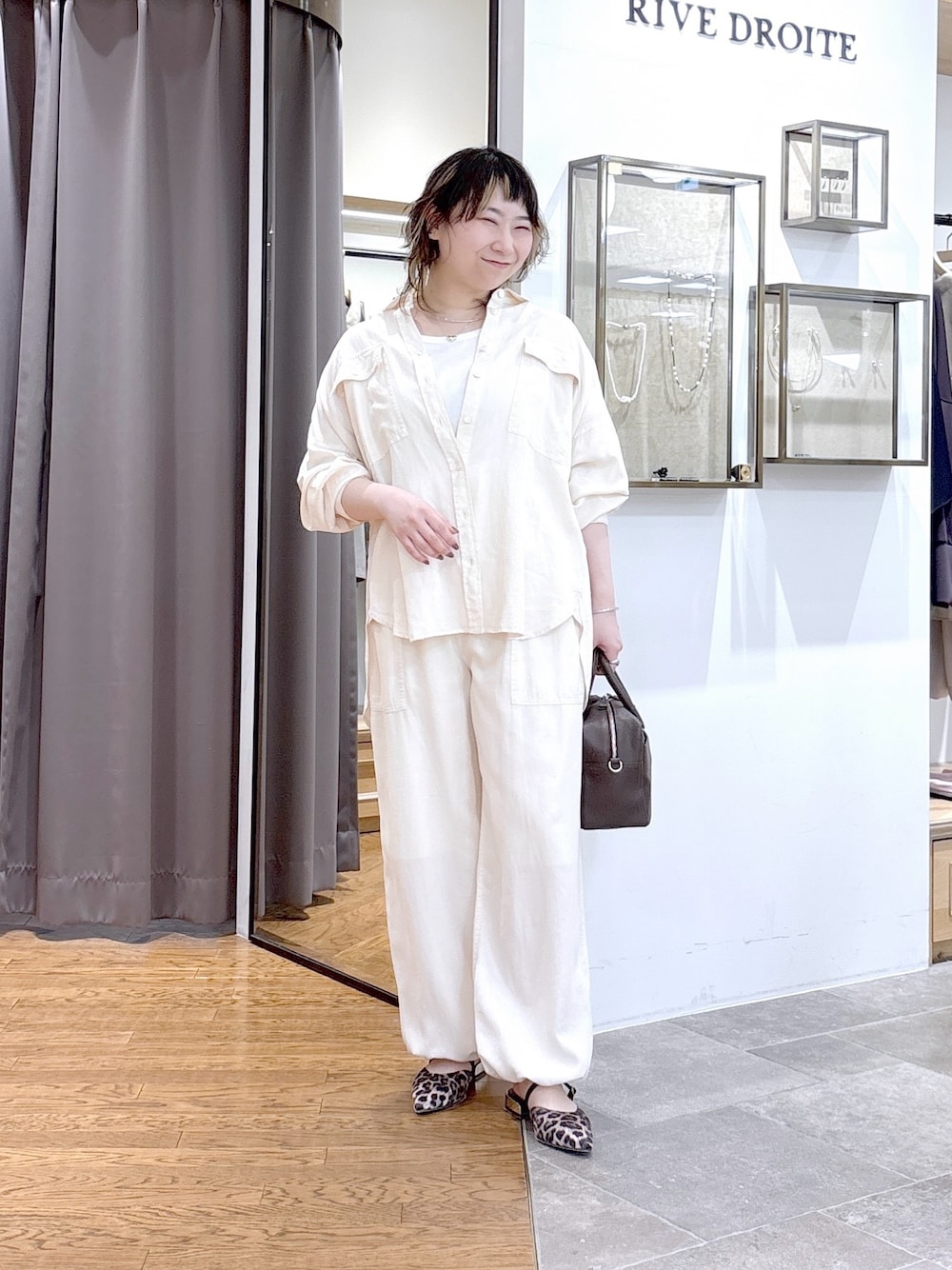 #158㌢ #骨格ストレート 【シャツ】38サイズ / エクリュ ゆったりシルエットながらも着痩せが叶うイチオシシャツ! 滑らかな素材で着心地抜群◎ ※38サイズは昨年のFサイズと同様のサイズ感です 【パンツ】38サイズ / エクリュ ラクな履き心地で足がスッキリ見える、理想のパンツ! ウエストはゴムでイージーな履き心地◎ 裾はドローコード付きでアレンジ可能! ※エクリュのみ裏地付きとなっております 【パンプス】Lサイズ / ベージュ(レオパード) スポッと履けて品よく決まるフラットパンプス! 足の甲がいい感じに固定されるので歩きやすいです◎ ポインテッドトゥで足元にスッと抜け感が出るところと、ゴールドのヒールがポイントになり、足元からお洒落に◎ キレイめ・カジュアルどちらのコーデにも合わせやすいおすすめパンプスです! ※普段は23.5〜24.0cmで靴を選んでいます