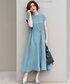 雨の日にオススメなお出かけコーデです^^ ワンピースは撥水加工で水をはじいてくれます! ウエストは総ゴムになっていて楽ちんですが、 ハイウエストめの切替できれいなシルエットです。 撥水生地ですが、シャカシャカせず柔らかい着心地なので普段ももちろん着られますよ♪ 160cm・Mサイズ着用で足首が見える丈感です。