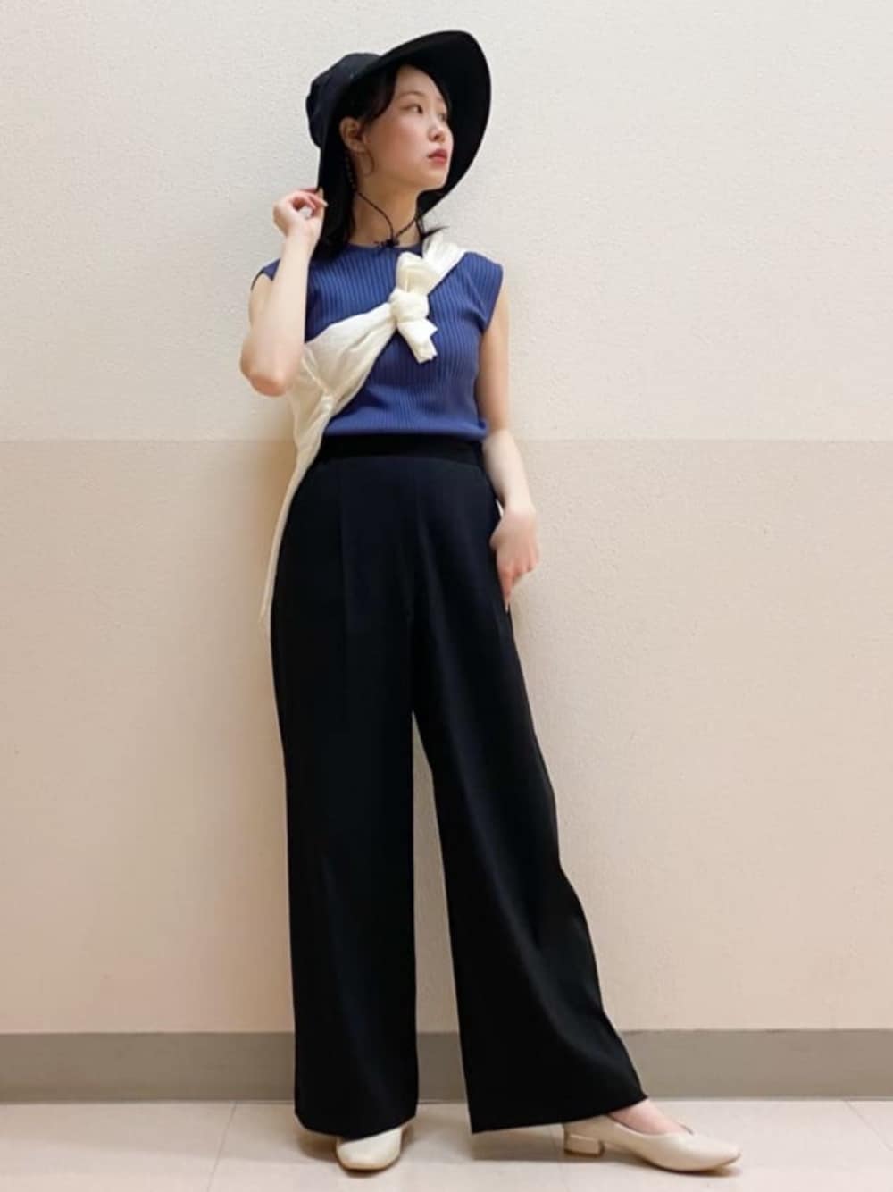 ☆スタイリングポイント☆ 急な雨も心配なし!撥水パンツ&ハットでキレイめカジュアルコーデ! 夏に注目のシアーシャツをたすき掛けしてこなれ感+ヒップラインをカバーさせています! ブラックメインのコーデに差し色を入れると、スタイリッシュなスタイリングに♫ 【シャツブラウス】 ・着心地&素材感 少しハリ感のあるシアー素材です 軽くてサラッとしています ・サイズ 157cm/Sサイズ着用 元々ゆとりのあるサイズですが、全体的に大きいです。 丈は膝上くらいまで、袖も少しながかったので小柄さん低身長さん、は袖は1.2回折り曲げるとスッキリ見えるかと思います ・おすすめポイント 接触冷感&洗濯OKな暑い季節には嬉しい機能付き!シボシボ生地が、オシャレ感up♪ ワンピースの上に羽織るのも可愛いです! 【トップス】 ・着心地&素材感 伸縮性があり、程よい肉感があります。 チクチクはしません。 ・サイズ 157cm/Sサイズ着用 ジャストサイズでした。丈は腰くらいの位置です。袖は若干肩にかかるくらいで、タンクトップまでは短くありません。 ・おすすめポイント 丸首とVネックの2way仕様! 今回は1枚で着ていますが、シャツやカーディガンを羽織ったりもOKです! UVカット・マシンウォッシャブル・毛玉になりにくい嬉しい機能付きです♡ 【パンツ】 ・着心地&素材感 ほんのりハリ感がありますがやわらかく、接触冷感ではないですがひんやりします。 ・サイズ 157cm/Sサイズ着用 ウエストはジャストサイズです。 丈感はワイドパンツなので少し長めですが、ヒールを履けばキレイに見えると思います ・おすすめポイント ウエストゴム仕様で楽ちんなのにシルエットが綺麗!撥水加工付きで水が触れてもシミになりにくいです♫ シンプルなデザインなので、ニットからTシャツ・ブラウスなどを合わせるのも◎ 雨の日やテーマパークにもおすすめですよ!