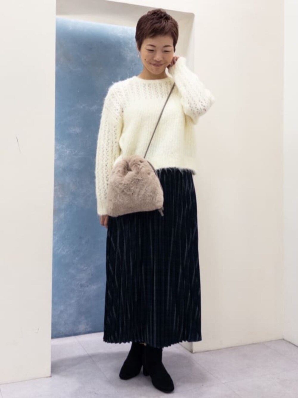 ★スタイリングポイント カジュアルお出かけコーデです! ニット 着用サイズ:M 【size感】 ゆったりしていて、楽に着られます。袖丈は少し長めで、私は手のひら隠れる程度です。 【素材、着心地】 とても柔らかく、チクチク感もなく着やすいです。 【おすすめポイント】 胸元の透け感がオシャレ! 私は中にタンクトップを着用しています。 スカート 着用サイズ:M 【size感】 ピッタリという感じです。重ね着することを考えてワンサイズ上でもOKです。 【素材、着心地】 光沢感があり、細かい柄も入っていますがシンプルに着やすいです。 【おすすめポイント】 カジュアルからキレイめまで幅広くコーデできます!
