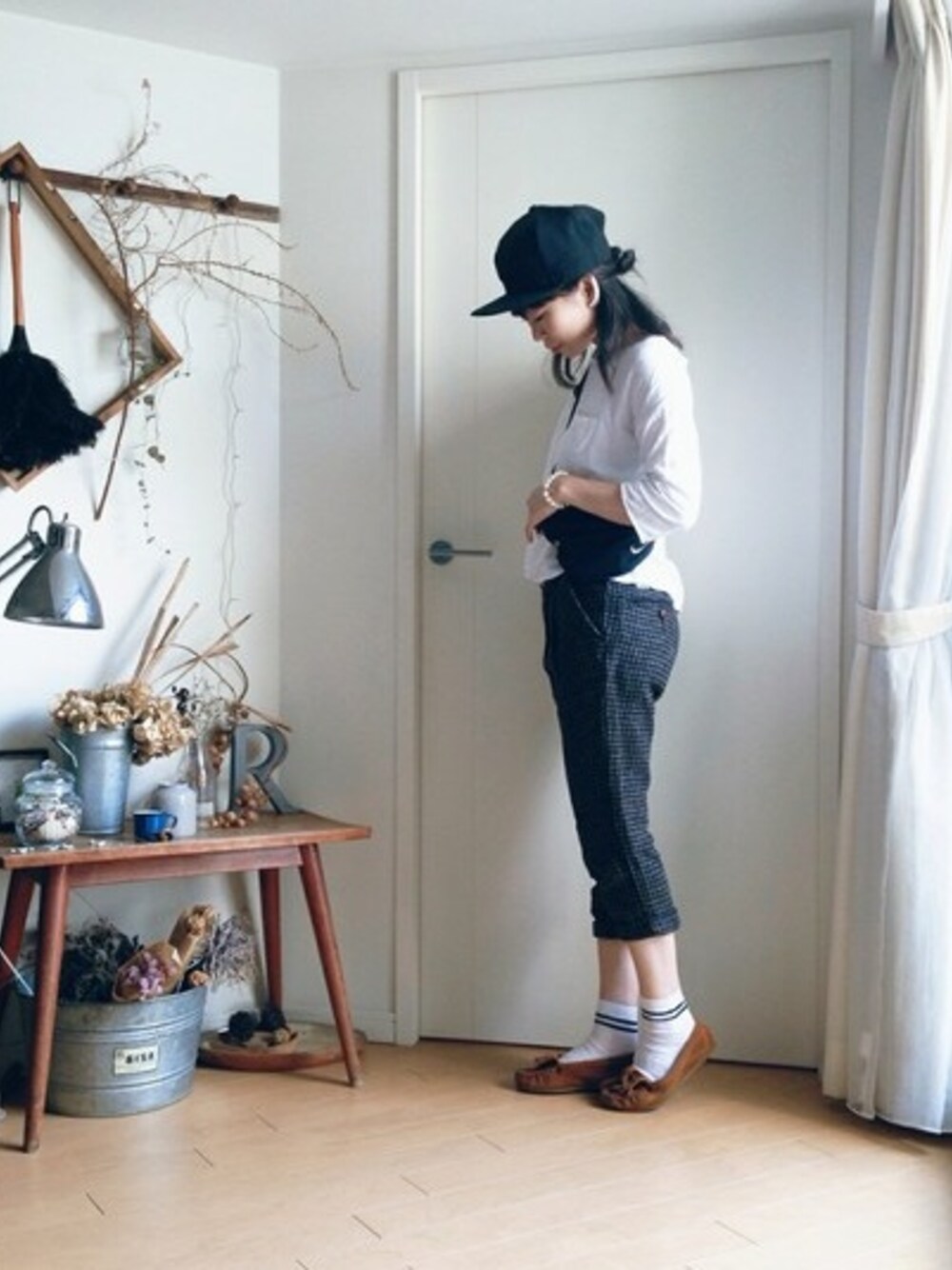 Rのスラックス「FATHERS TAPERED TROUSER CROP 2」を使ったコーディネート