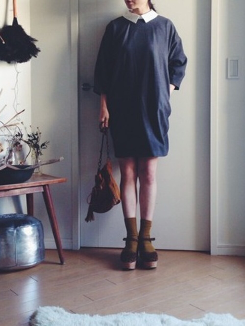 コクーンワンピ。 もったりトップスに合うアウターがないっ。 今年こそチェスターコートが欲しいな。