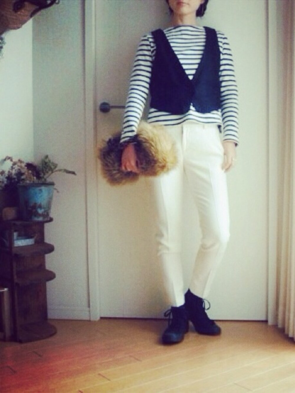 今日はベストを着てちょっとキチッと感を。 ボーダー→マカフィー スニーカー→コンバース