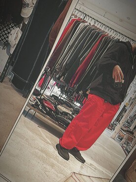 「yeezyboost350のアイテム(スニーカー、ブラック系)」を使った、るんさん(メンズ)の春コーディネート