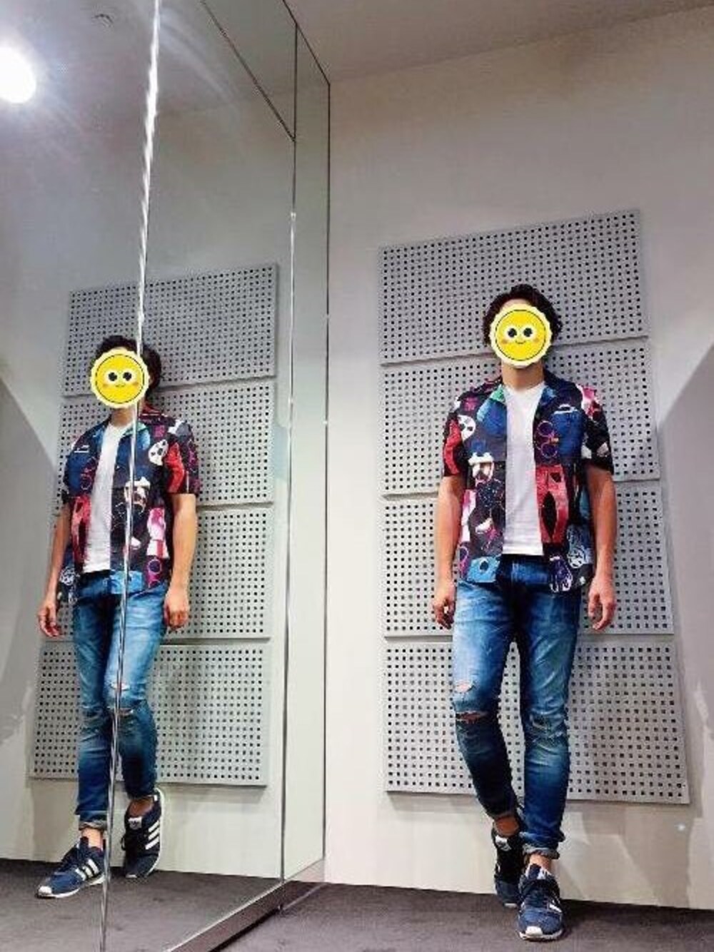 新作オブジェ柄シャツを使ったサマーコーデ。 シャツの総柄を活かすため、他のアイテムをシンプルにまとめました。