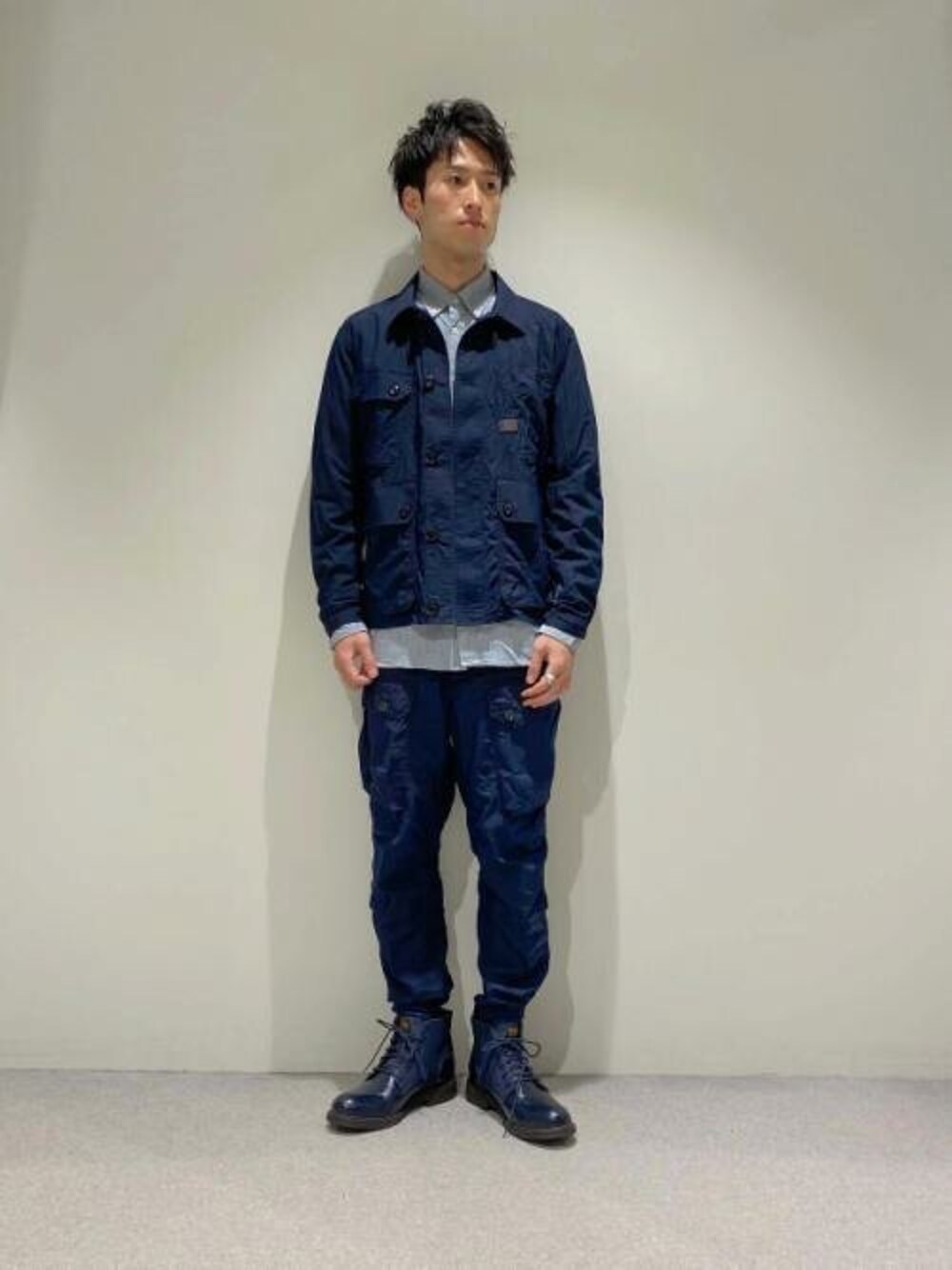 新作リラックスカーゴを使ったミリタリーコーデ。 同素材のジャケットを合わせてセットアップにしています。 カジュアルになりすぎないようインナーはシャツで。