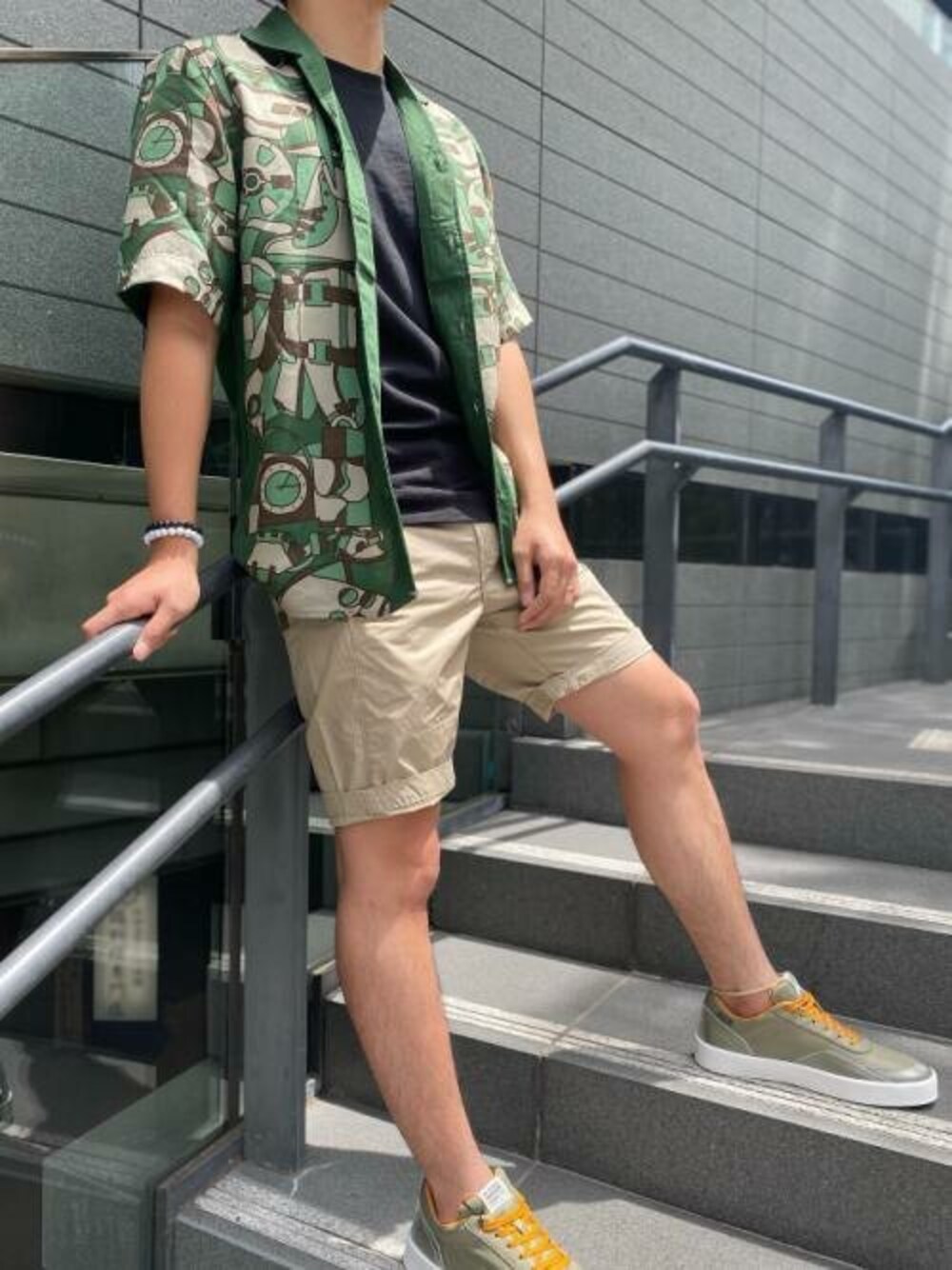 グラフィックプリントが印象的なショートスリーブシャツを使ったコーデ。 トロンとした触り心地の良いシャツで、この夏大活躍間違いなしです!!! 柄にインパクトがあるので、ボトムスはベーシックなショートチノをチョイス。 シャツ生地のショーツでソフトな肌触りです。