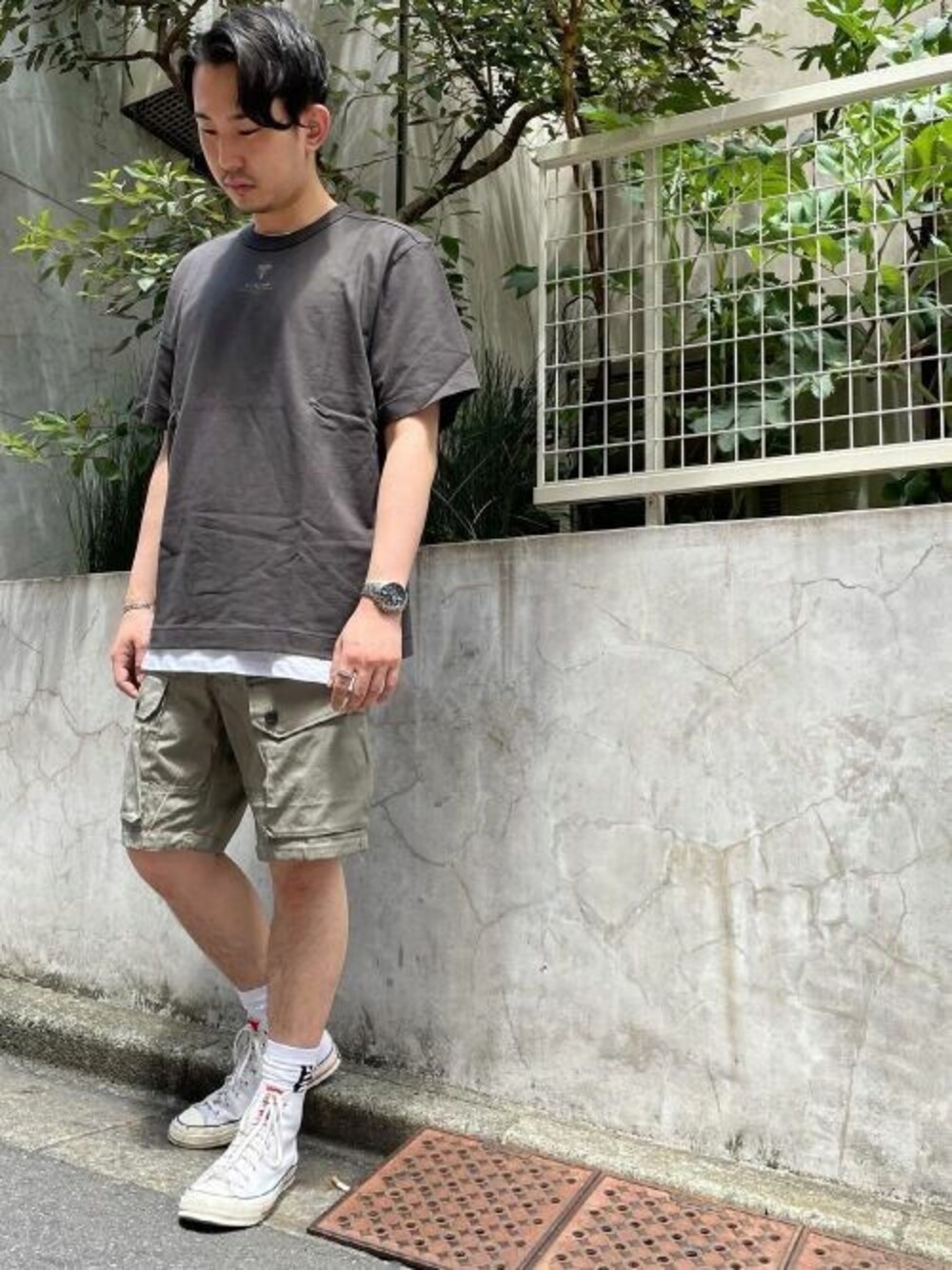 新作Tシャツを使ったコーディネート。 ルーズフィットのヘビーオンス、特徴的なバックプリントがインパクト抜群です。