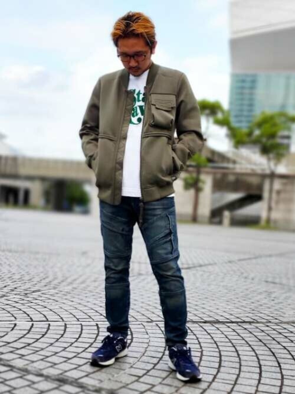 G-Star RAW定番のネオプレーン素材のミリタリージャケットを使ったカジュアルコーデ。