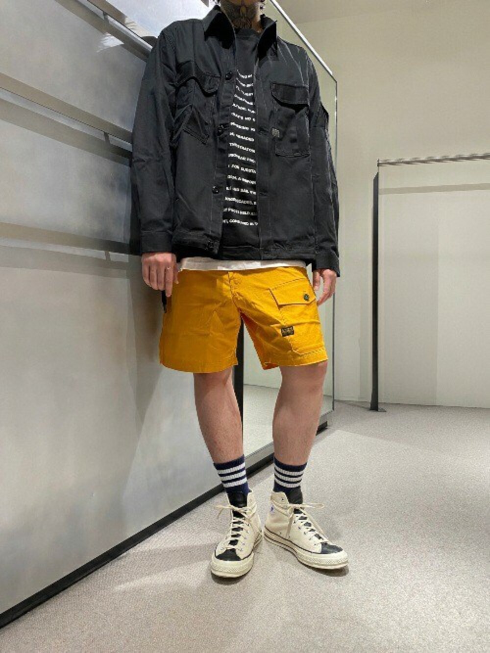 \爽やかなイエローショートパンツのご紹介/ トップスはブラックでまとめ、イエローにフォーカスしたコーデ。 ビビッドなイエローはどんなコーデにも差し色になるカラー! ぜひ色々な組み合わせをしてみて下さい♪