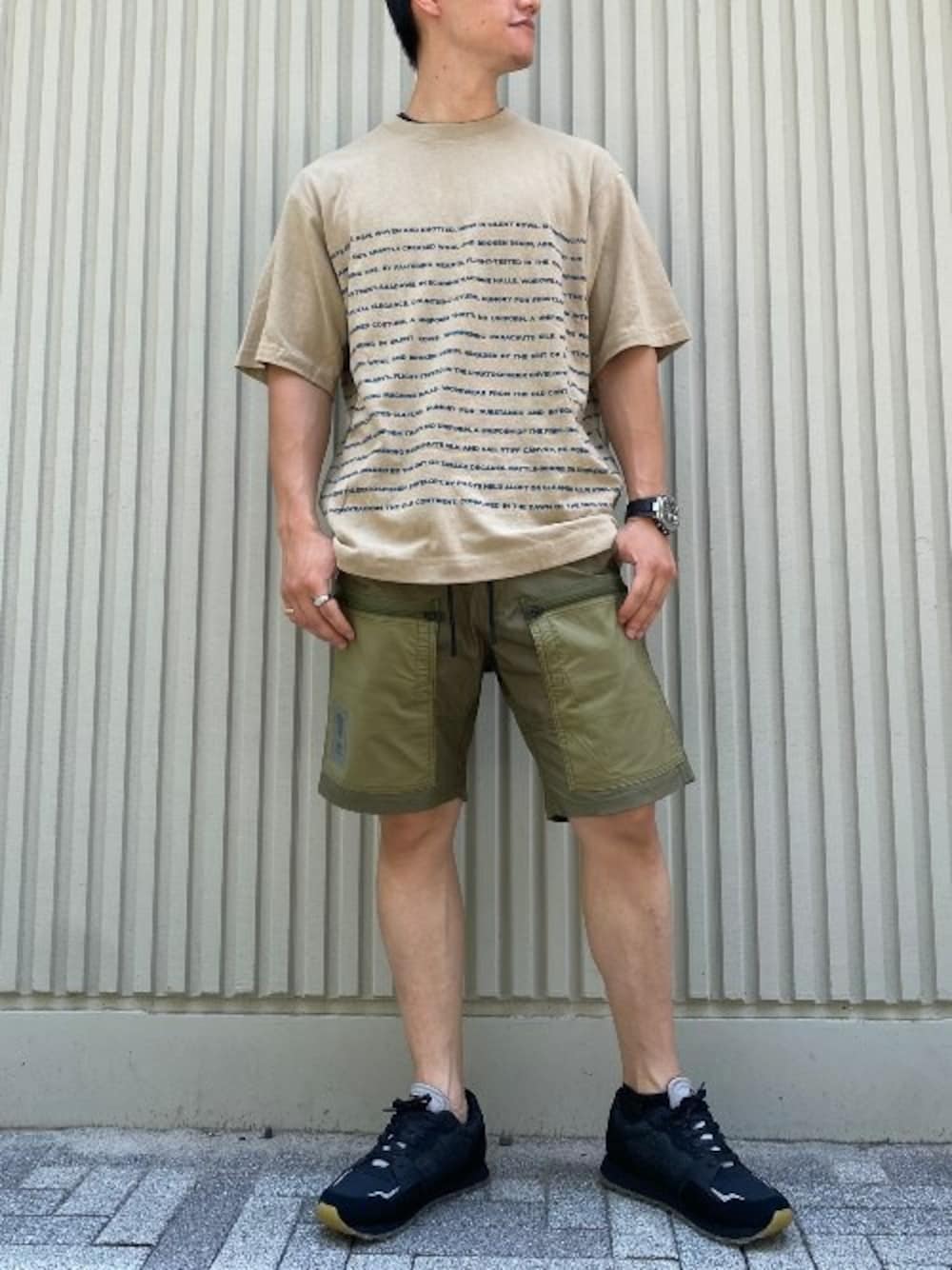 【Recommend Item】 TシャツはG-Starのオリジナルテキストをプリント‼ 同系色のバイカラーカーゴパンツはシャツなどに使用されるポプリン生地を採用し、汗ばむ季節も快適な着心地◎