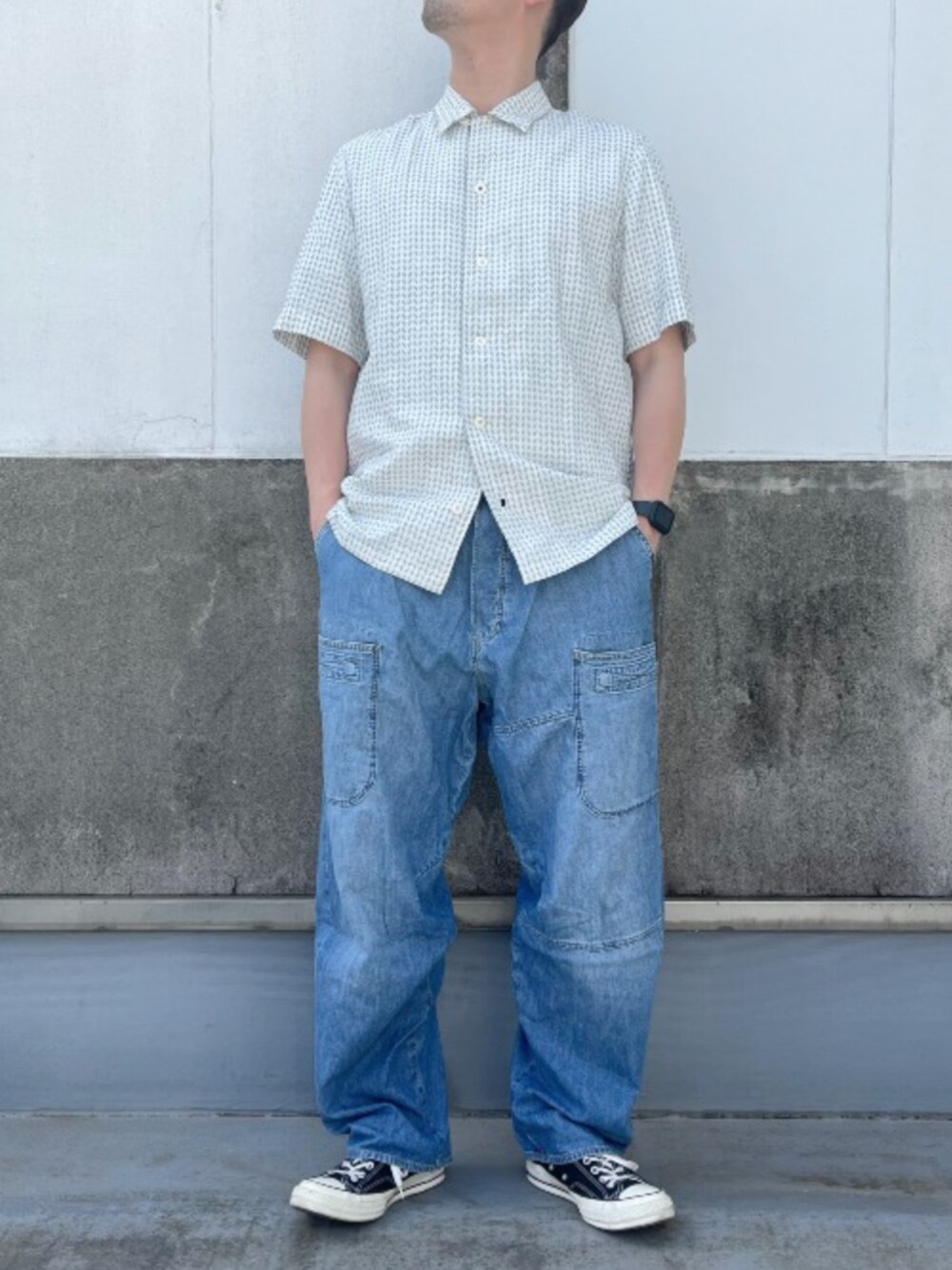 軽い生地感の新作ワイドデニムカーゴを使ったコーデ。