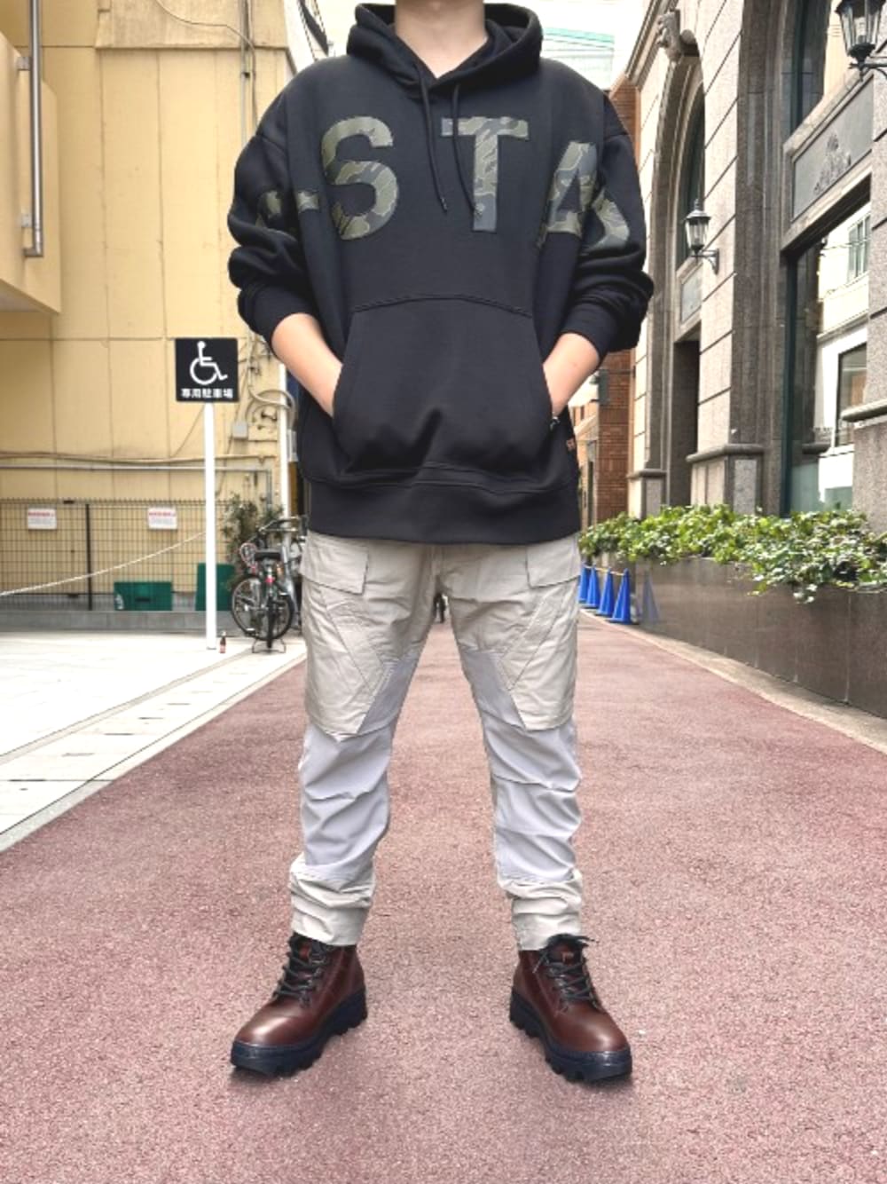 フロントのロゴがインパクトのある新作パーカーをオーバーサイズで。 合わせたカーゴパンツもポケットのディテールがG-Star RAWらしい差がつくアイテムです。