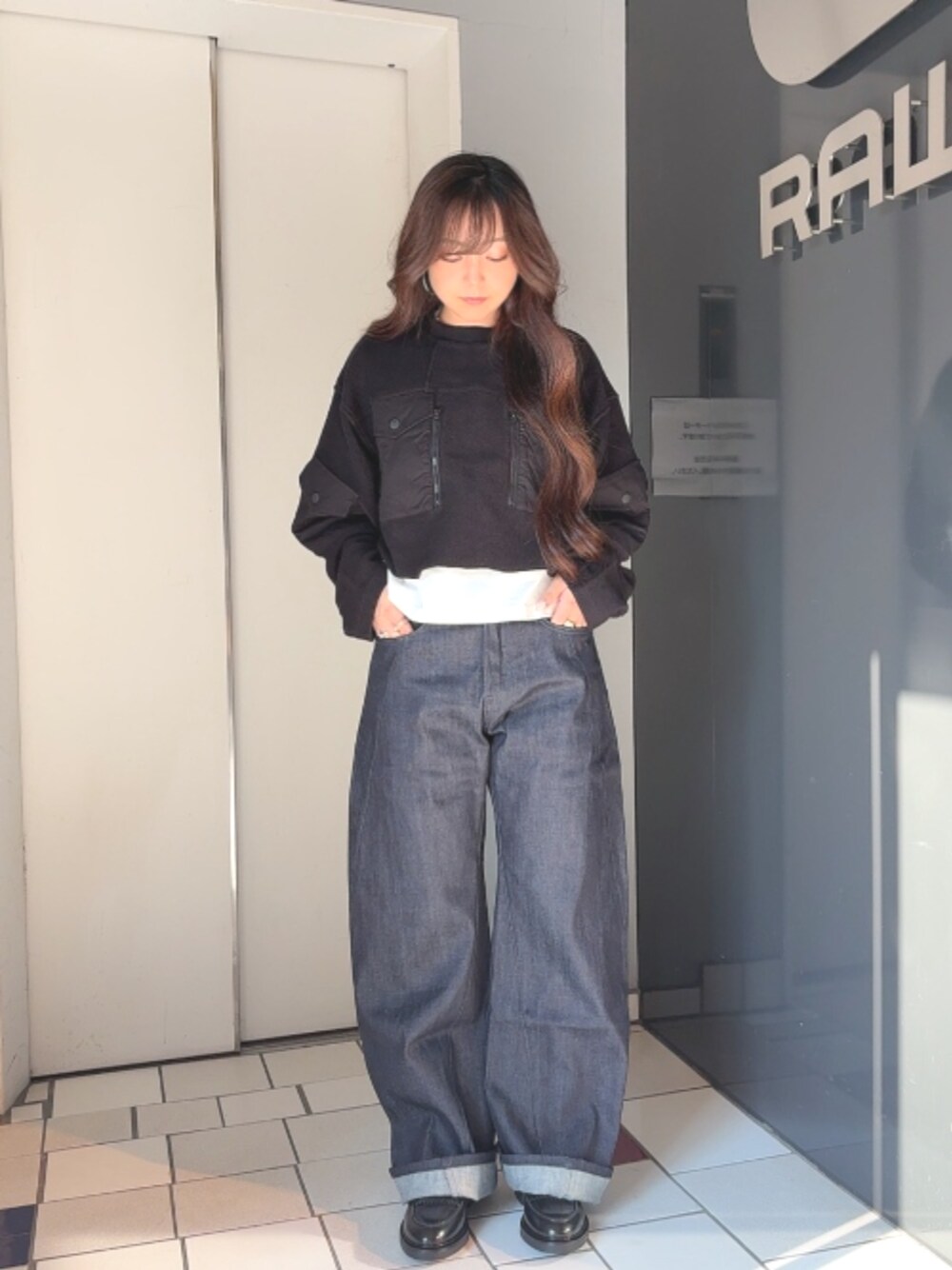 G-Star RAW(G-Star RAW)のスウェット「MULTI POCKET MIX LOOSE CROPPED SWEATER/異素材ミックスマルチポケットクロップドオーバーサイズスウェット」を使ったコーディネート