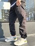 異素材ミックスのパーカーとリラックスシルエットのトラックパンツを合わせたモノトーンスポーツミックスコーデ。