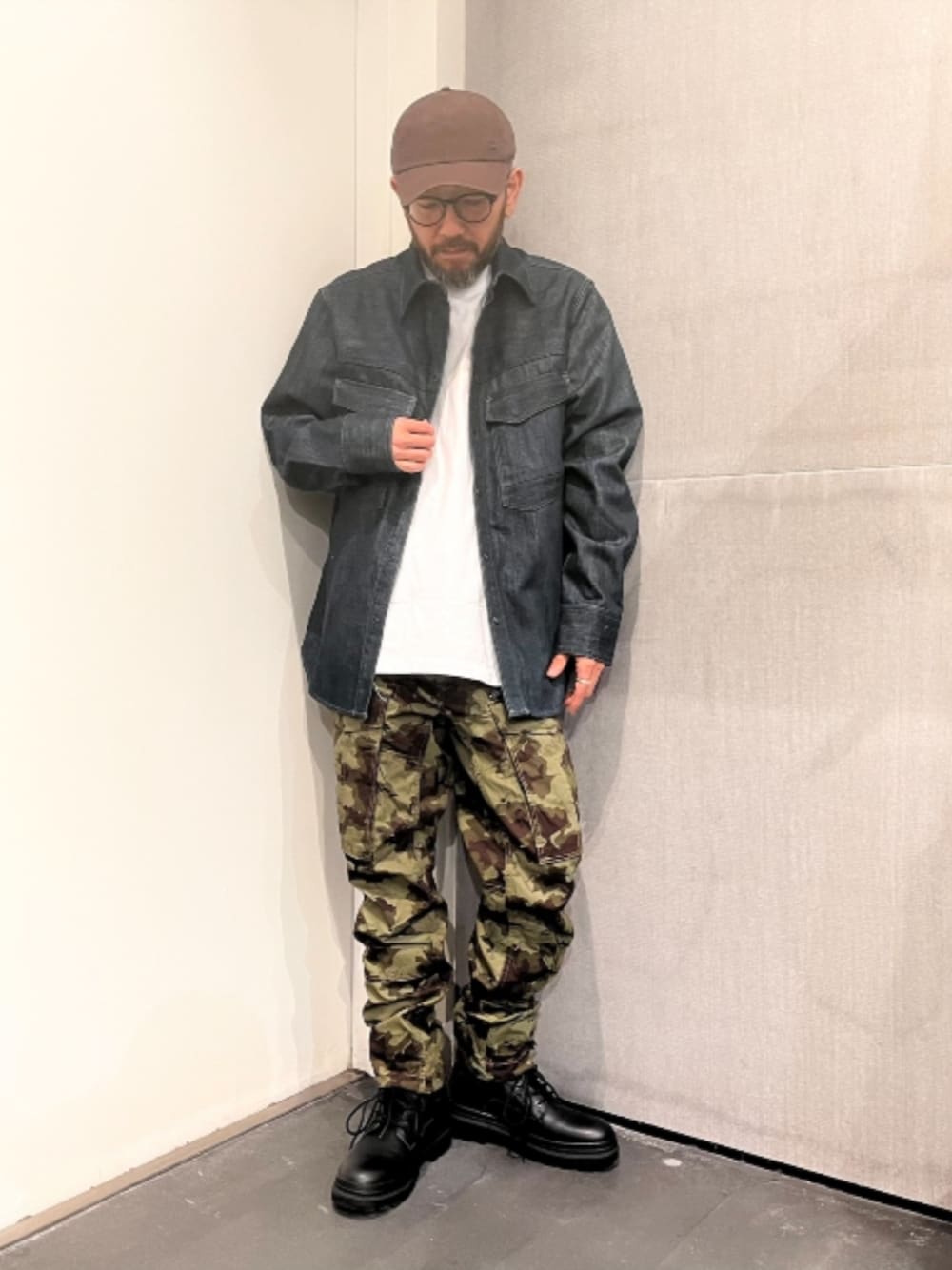 G-STARのカーゴパンツの中でも人気のRovicに、カモ柄の新色が登場。 落ち着いたグリーンとブラウンの配色とすっきりまとまるテーパードシルエットで、大人でも穿きやすい仕上がりになっています。 ボトムのブラウンと同系色のキャップを合わせ、トップスやシューズはシンプルにまとめてボトム主役のコーディネートに◎