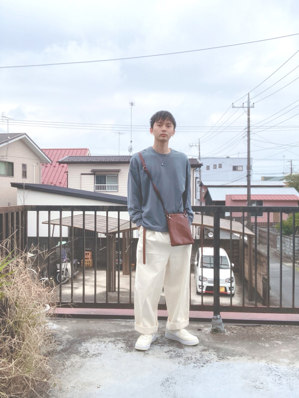 おはようございます🍃 今日は上下ともセンスオブプレイスの服を使ったコーデです! グリーンのような中間色のスウェット+白のワイドパンツの相性はバツグンです。この上にコートなんかを着ても様になってしまう万能なコーディネートだと思います☺︎ 小物は秋らしくブラウンで統一してます。 --------------------------------------- 💭Size… Sweat:L Pants:M Sneaker:28cm ---------------------------------------