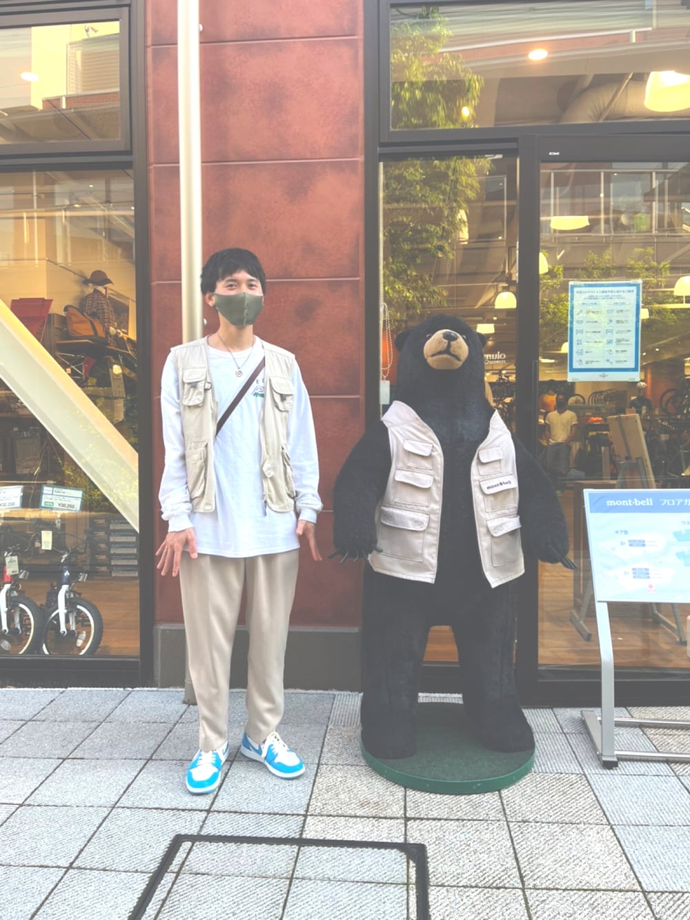 クマと一緒に…🐻 ペアルックみたいになってしまいました笑 このスニーカーを軸に組んだコーディネート!この鮮やかな青×ベージュで組み合わせたら好きすぎました〜! ベストもパンツと色合わせているから派手になりすぎず、個性もあって理想のコーデが組めました --------------------------------------- 💭Size… Vest:XL T-shirt:XL Pants:M Sneaker:28.5cm ---------------------------------------