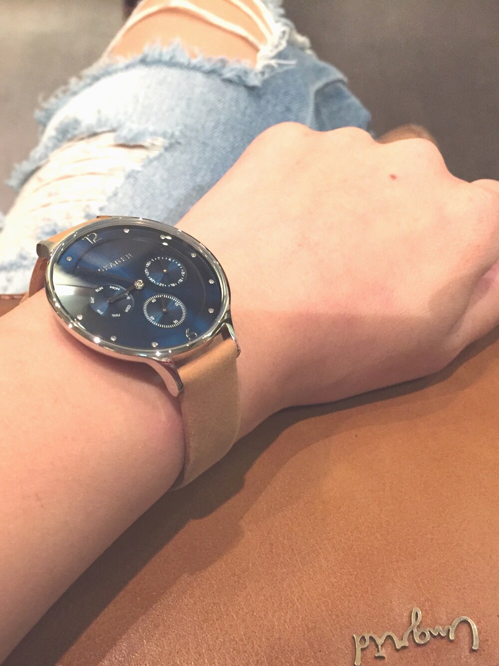 最近、腕時計を新しくしました🙋 お仕事するのに欠かせないアイテム✨✨✨ ベルトと文字盤の色合いが好みで、、😍😍 大きさもいいサイズ♡