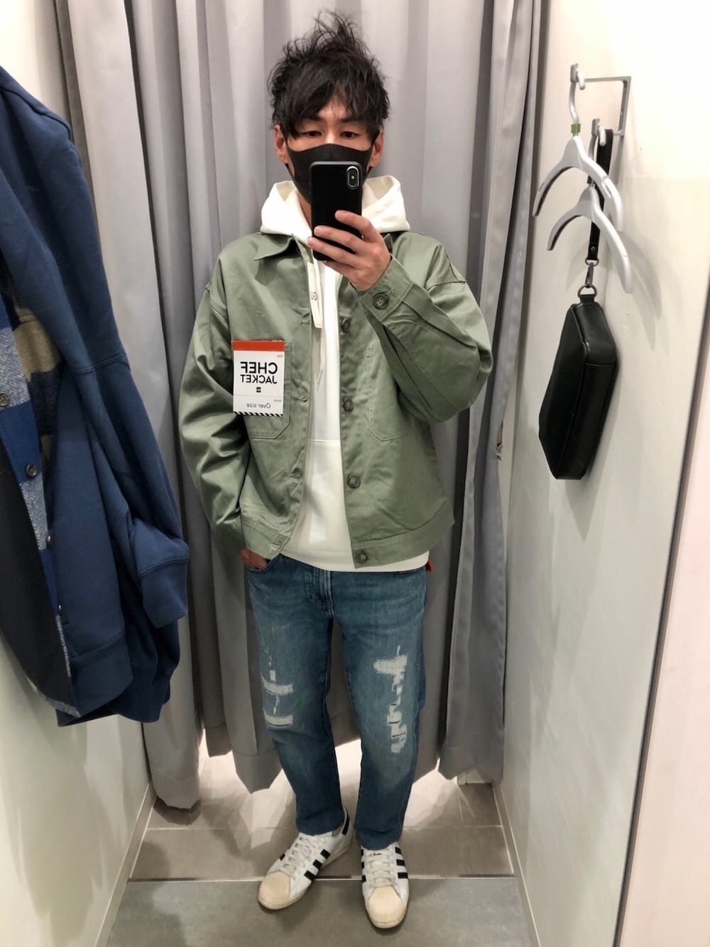 GU369のスニーカー「ユニセックス アディダス スーパースター ホワイト/ブラック/金ベロ adidas Originals SUPERSTAR 80s G61070」を使ったコーディネート