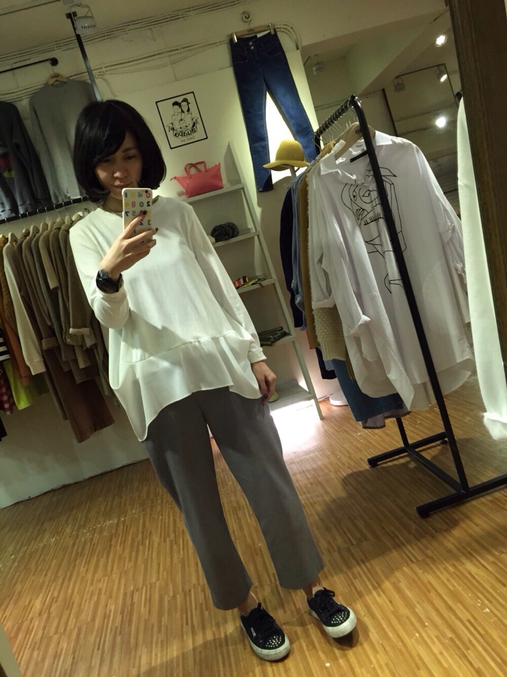 超舒服棉感拼接上衣 它是棉質拼雪紡材質唷! 前面抓皺設計穿起來好立體噢! 感覺小肚子都遮住咧~ 搭配上今天的西褲也是半鬆緊褲頭, 不會緊到覺得勒住肚子的肉肉~ 穿起來感覺我覺得也是帥氣路線的 還沒趕上西褲熱潮的話就買這件吧!