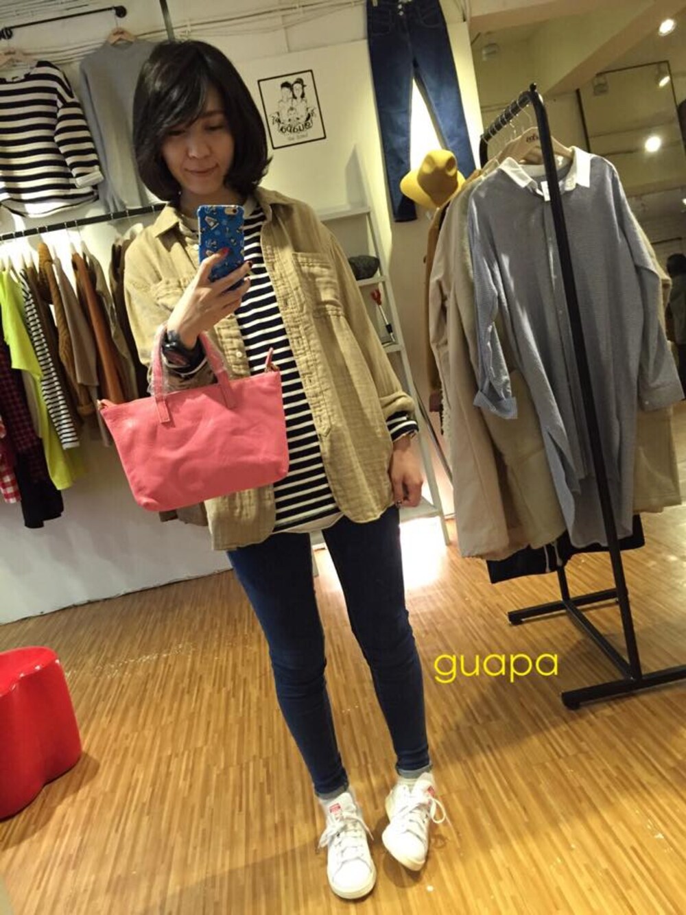 開工囉!! 休息休息充個電果真神清氣爽的 來來~~新春活動報到! 2/22~2/26止,凡店面.網路購買消費滿$3000(單筆計算.網路需2/26前帳完成),即可參加抽獎噢~ 抽出40名,送出真皮小包(ㄧ色) 圖中粉色的小包唷~價值$1280 2/27公布粉絲團唷! 我身上的棉麻襯衫好適合現在到夏天穿,聽說過年這幾天好像蠻熱的!! 當小外套穿好方便捏!有點喜歡這個杏色捏~覺得好美 所以商品在這 www.guapa.com.tw 挑選滿3000即可!把握時間噢! 杏色襯衫,推! T404 http://ppt.cc/LczM 條文上衣 T314 http://ppt.cc/sVoy