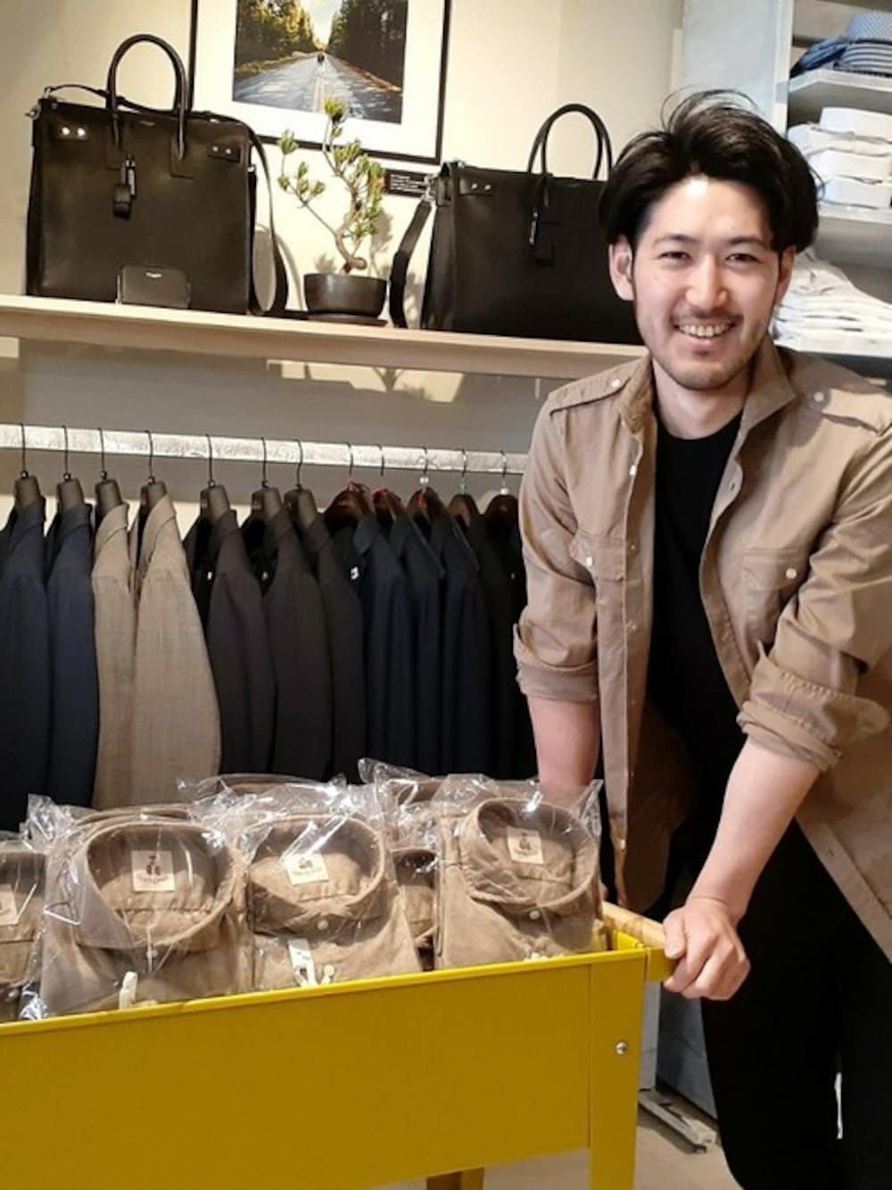 今回は今季新作の中でも一押しのギローバーのサファリシャツをただただ推させて頂きます。 店内でもワゴンに各サイズどっさり入れてご用意しております笑 いろいろなコーディネートに使える便利なサファリシャツ。 子供っぽさは全くなく、むしろシャツブランドならではの上質な素材と仕立てがとても大人らしい顔をしています。 台襟が低く、襟を立ててシャツジャケット風に着こなすのもアリです。 ホワイトデニム、ブラックチノ、ブルージーンズ、ボトムスを変えるだけでいろいろ楽しめちゃうので、大変オススメ。 今回のスタイルで使用しているグランサッソのトップスとPT05のボトムスがブラックで統一なのもポイントだったりします。 この頃流行りのラテカラーコーデにもいいですね。