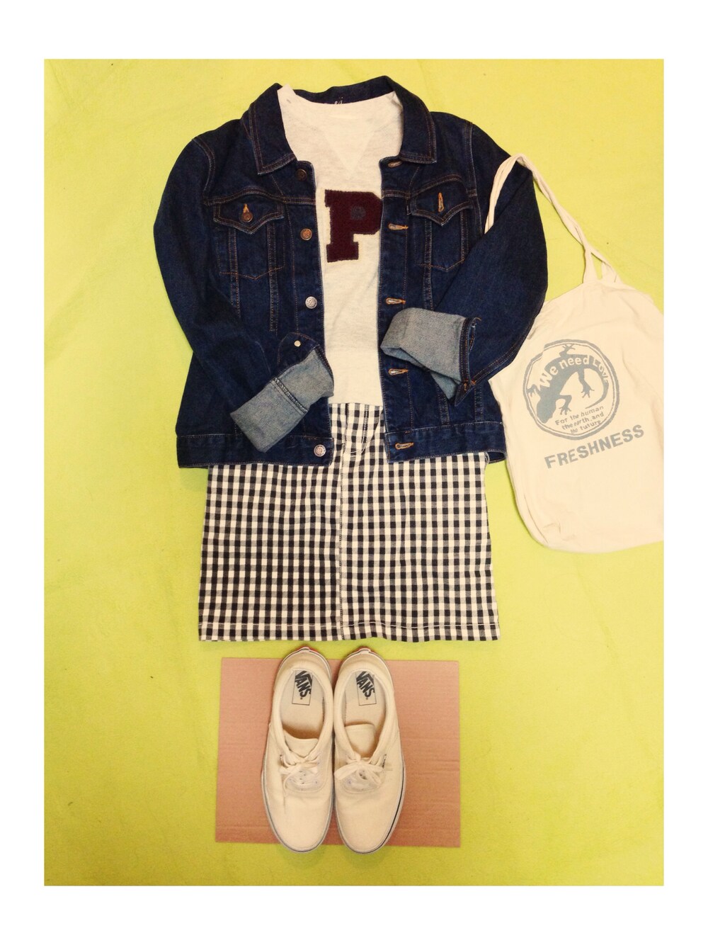 新潟に行ってたので、帰ってきて東京の温かさに驚いています(°_°) Gジャン:古着 スカート:RAY CASSIN エコバッグ:フレッシュネスバーガー