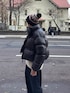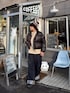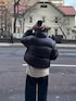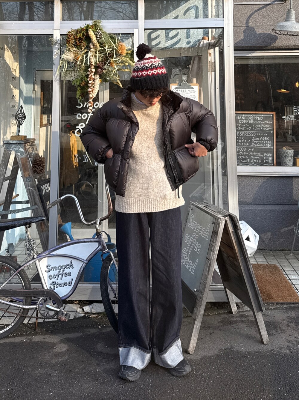 北海道旅行に行った時のコーデ。短丈ダウンにあえて大きめのニットを合わせてレイヤード風に。ニット帽も被って防寒対策はバッチリ。