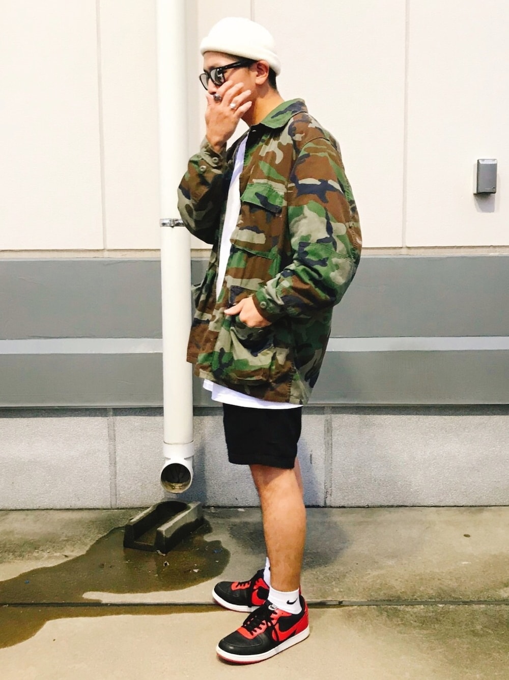 こんにちは、91(ぐち)です🙌 size感のいいカモフラシャツを見つけたもんで🎵 赤黒ターミネーターと合わせて👟✨ 見て頂きありがとうございます🙋♂️ インスタ→@ura_9chi プロフィールのリンクからも飛べます✈︎