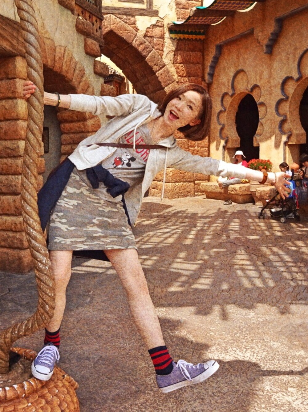 4.16 親友とディズニーシー♡ ディズニーに合わせてミッキーTを着て行った!\(//∇//)\ スニーカーにスウェット生地のスカートはめっちゃ動きやすかった! ジャケットは夜活躍してくれました。 暖かくて楽しい日になりました♡