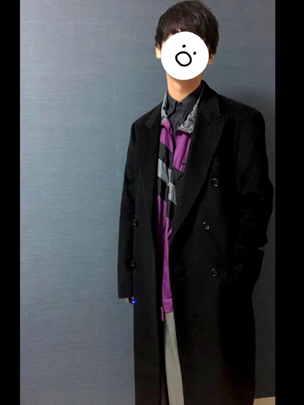 コート着せてみました ARMANI COLLEZIONIが重厚感与えてくれてます〜 ナイロンジャケットとダブルブレストチェスターの組み合わせは初めてだぁ 和と洋がアンミカ夫妻ぐらい合う、? パンツはHakamaです