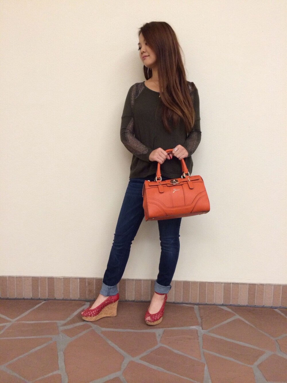 GUESS?イクスピアリ店のニット/セーター「L/S MIXED STITCH PULLOVER KNIT (ロングスリーブ ミックスド ステッチ プルオーバー ニット)」を使ったコーディネート