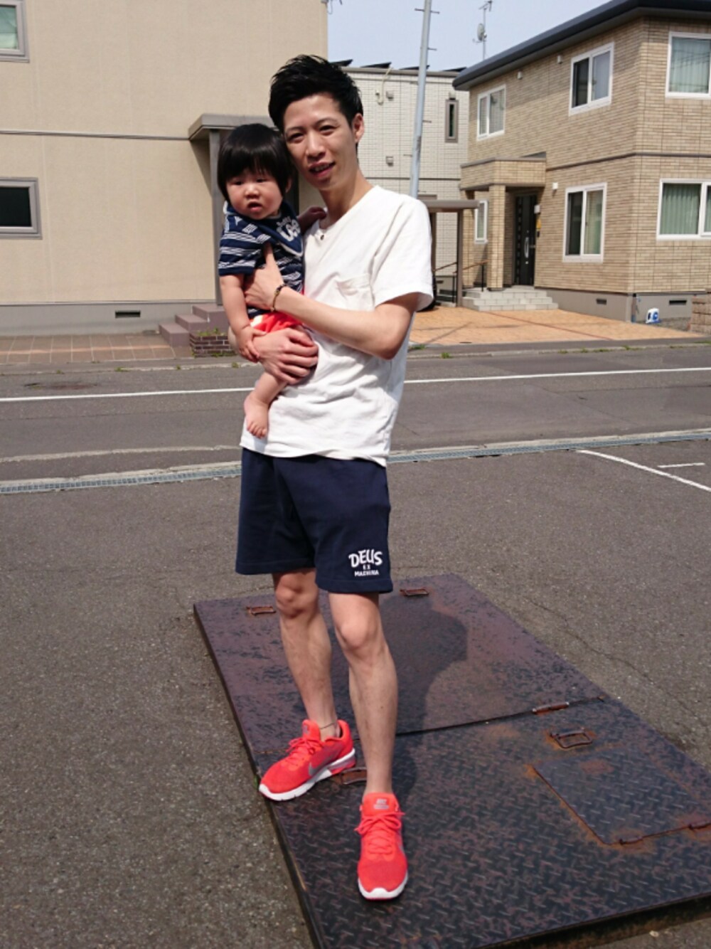 息子と、色合いシンクロコーデ✨ 2人とも、スウェットハーフパンツ☺ 息子の、ハーフパンツの色合いが可愛いすぎて、自分用にも欲しくってしまいました😂