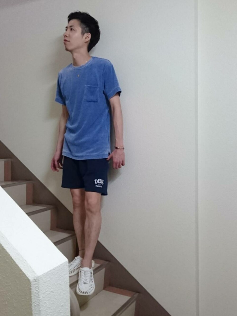 ブルーコーデ☺️ CALI SURFのトップスは、かなり着やすいです🎵タオル生地サイコー⤴️⤴️ とことん、楽にラフに😆